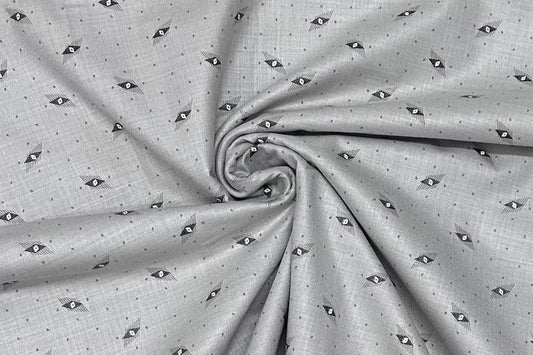 Light Grey with Geometric Print Cotton Shirt Fabric (Length-2.25 Meter | Width-34 Inch)