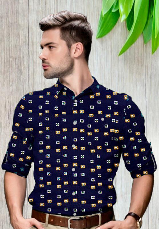 Navy Blue Digital Printed Pure Cotton Shirt Fabric
