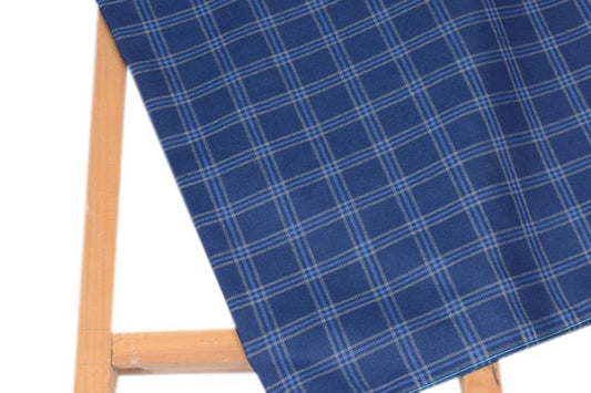 Midnight Blue Tweed Fabric with Lightblue & Light Yellow Big Checks ( 2 Meter Cut Piece)
