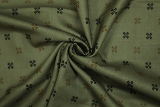 Olive Colour Digital Printed Cotton Shirt Fabric (Length-2.25 Meter | Width-34 Inch)