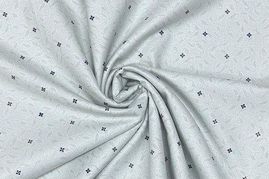 Navy Blue Printed Cotton Shirt Fabric with Light Grey Pant Fabric Combo